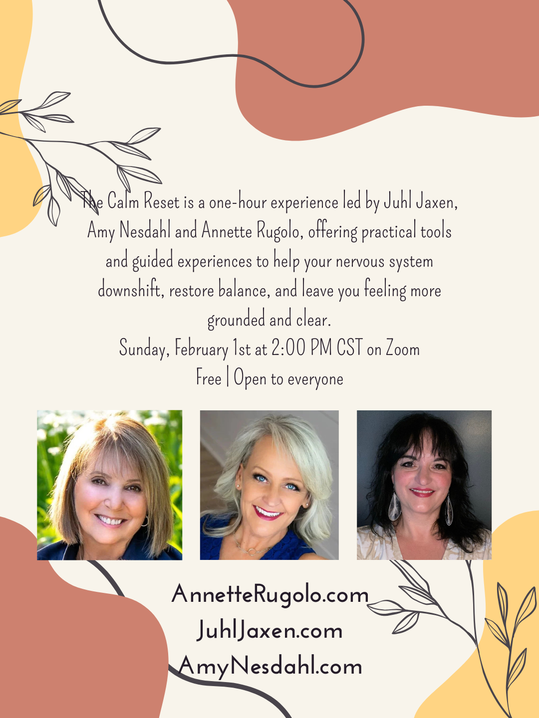 A one hour experience offering practical tools and guided experiences to help your nervous system downshift, restore balance, and leave you feeling more grounded and clear.